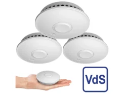 VisorTech Feuermelder Funk:3er-Set Vernetzbare Funk-Rauchmelder, 85 DB, VdS, 10-J.-Batterie