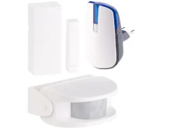 CASAcontrol Durchgangsmelder:Steckdosen-Funkklingel Mit PIR-Bewegungsmelder & Tür- & Fenster-Alarm