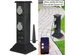 Royal Gardineer Steckdosenstein:4-fach-WLAN-Garten-Steckdose, App, Sprachbefehl, 16 A, 3.680 W, IP44