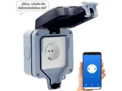 Luminea Home Control Smarte WLAN-Outdoor-Steckdose, Energiekostenmesser, App, IP44