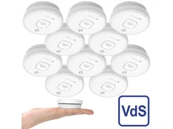VisorTech Rauchmelder:10er-Set Fotoelektrische Rauchwarnmelder, 10-J.-Batterie, 85 DB, VdS