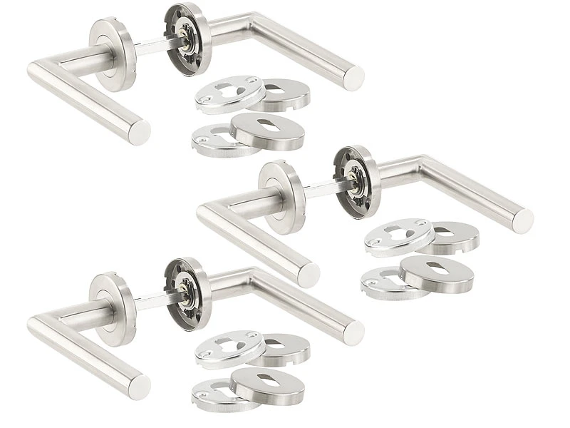 - 3er-Set Türbeschläge inklusive je 2 Türklinken, 2 Klinken-Klipp-Rosetten, Vierkant-Stift, 2 Profilzylinder-Rosetten, 2 Buntbart-Klipp-Rosetten, Montage-Material und deutscher Anleitung – Moderner Design-Türbeschlag – Außerdem relevant oder passend zu: WC