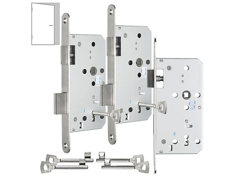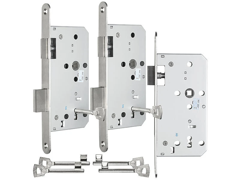 - 3 Buntbart-Einsteckschlösser (DIN rechts) mit Falle und Riegel je inklusive Schließblech, 2 Schlüsseln, 3 Schrauben und deutscher Anleitung – Einsteck-Zimmertürschloss – Außerdem relevant oder passend zu: Schloss, Türgriff, Schlüssel, Türbeschlag, Türbeschläge