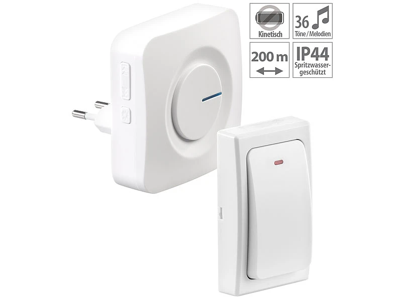- Batterieloser Klingel-Taster: nutzt die beim Betätigen entstehende kinetische Energie