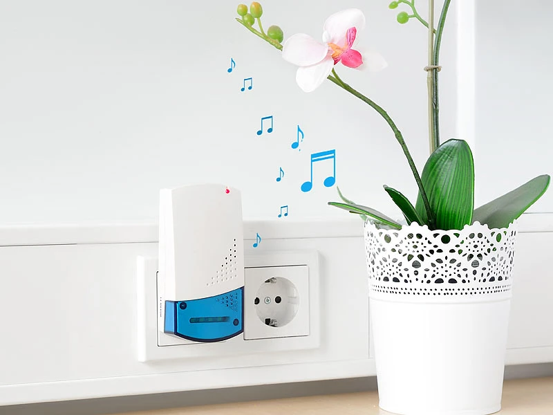 - Ideal für den mobilen Einsatz: Klingel einfach in die Steckdose stecken (Empfänger), den Klingelknopf an beliebigen Ort legen (Sender)
