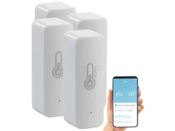 - 4 Temperatur- und Luftfeuchte-Sensoren inklusive deutscher Anleitung – Smart Home Thermometer ZigBee – Außerdem relevant oder passend zu: Wellness, Thermostat, Wetterstation