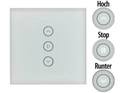 Steuern Sie Ihren Rollladen mit Still, einfach per Berührung: Ersetzen Sie Ihren klassischen Schalter. Und schon reicht ein leichtes Antippen auf die elegante Glasoberfläche, um Ihren Rollladen hoch oder runter zu fahren!