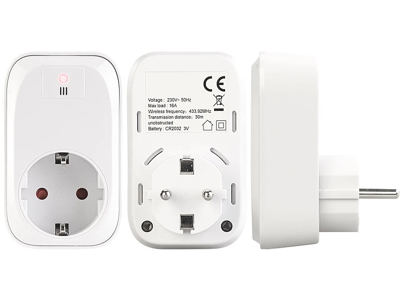 - 3 Funk-Steckdosen inklusive Fernbedienung mit Knopfzelle und deutscher Anleitung – Funksteckdosen mit Fernbedienung – Außerdem relevant oder passend zu: Schalter, Schaltbare, fernbedienbar, Ferngesteuerte, Fernbedienungen