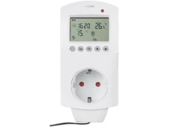 - Automatisches, temperaturgesteuertes Schalten von Heizungen mit Steckdosen-Betrieb