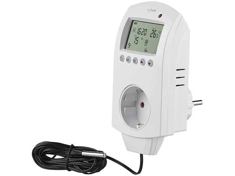 - Steckdosen-Thermostat inklusive kabelgebundenem Sensor und deutscher Anleitung – Steckdose mit Temperatursensor – Außerdem relevant oder passend zu: LAN, Funk, TUYA, Smart, iPhone, Heizen, Heizung, Aquarium, Radiator, Schalter, Heizlüfter, Luftkühler, Heizkörper, Ölradiator, Thermometer, Klimaanlage, Frostwächter, Heizstrahler, Zeitschaltuhr, Funksteckdose, Geschenkideen, Fernbedienungen, Temperaturmessung, Heizkörperthermostat