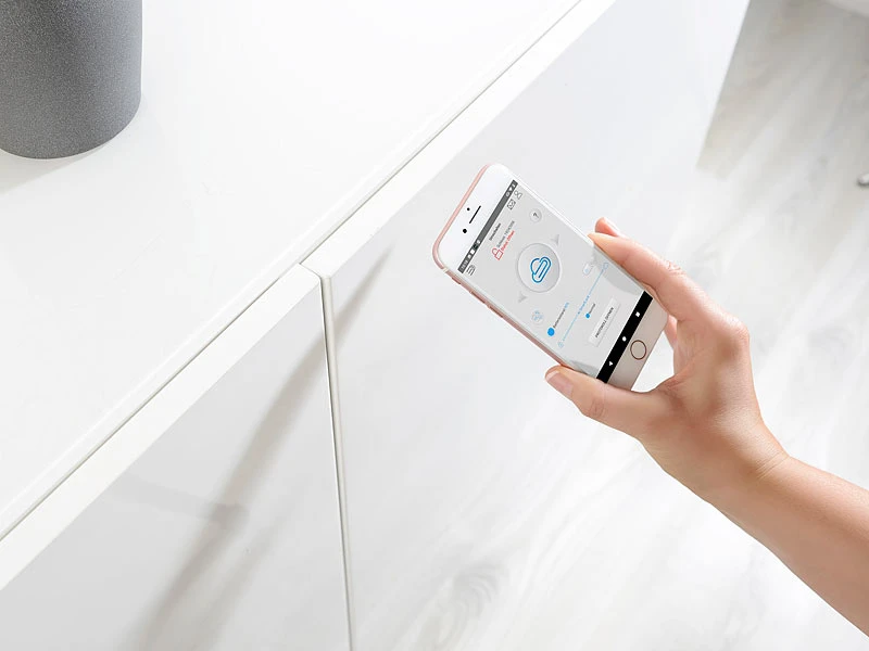 Schlüsselfrei dank kostenloser App: Zum Entriegeln halten Sie einfach Ihr Smartphone an die Schublade oder Schranktür. Und dank Verriegelungs-Automatik brauchen Sie nur die Schublade oder Tür zu schließen!