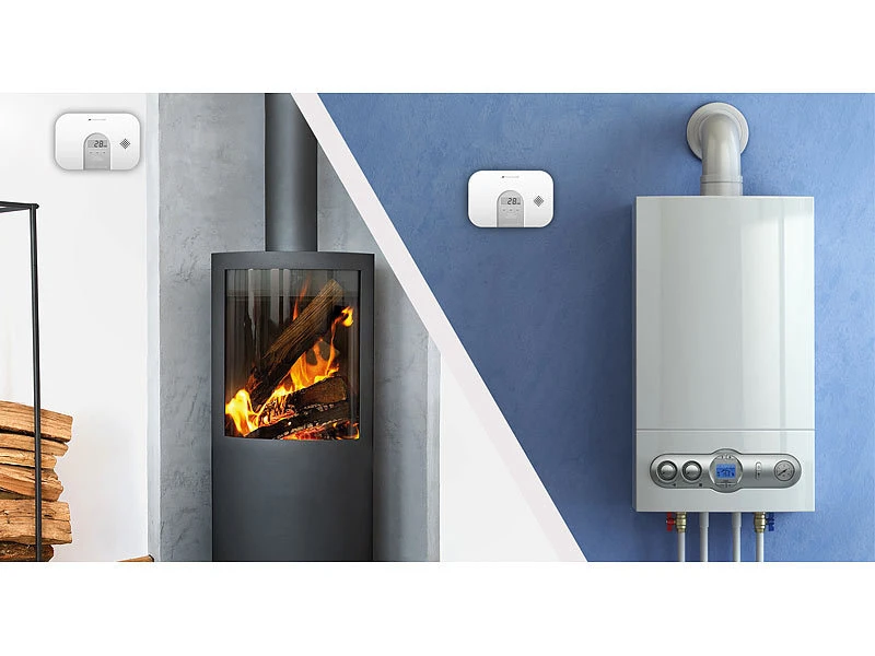 - Ständige Messung des CO-Gehalts in der Raumluft, warnt vor giftigem CO