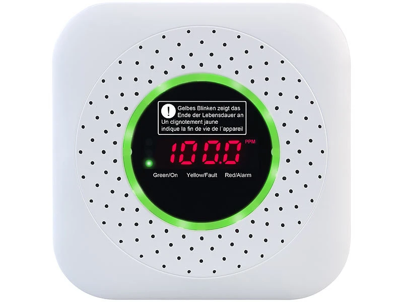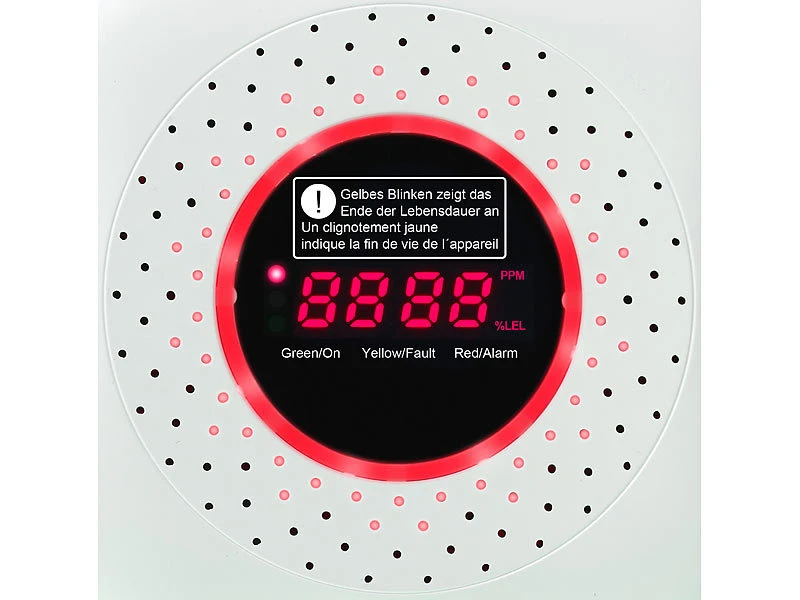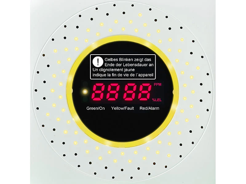 - LED-Display zur Anzeige der Gas-Konzentration in der Raumluft