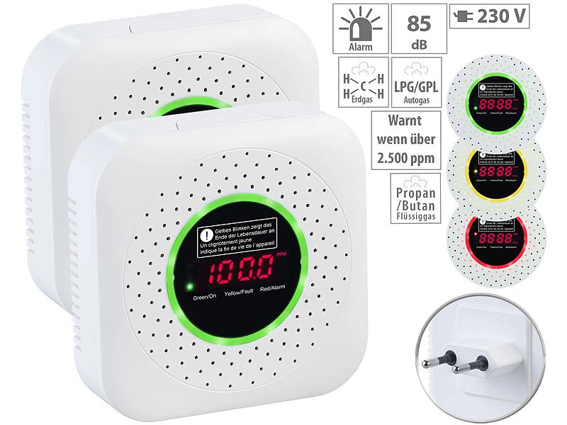 - 2er-Set Steckdosen-Multi-Gasmelder inklusive deutscher Anleitung – Gasmeldeanlage – Außerdem relevant oder passend zu: Reise, Kocher, Reisen, Camping, CO Melder, Gaskocher, Gasflasche, Autogarage, Auto Heizung