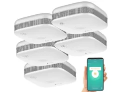 - 5 WLAN-Rauchwarnmelder RWM-190.app jeweils inklusive Batterie, Montagezubehör (2 Dübel, 2 Schrauben, 1 Klebepad) und deutscher Anleitung – Feuermelder mit App – Außerdem relevant oder passend zu: Mini, Tablet Halterung